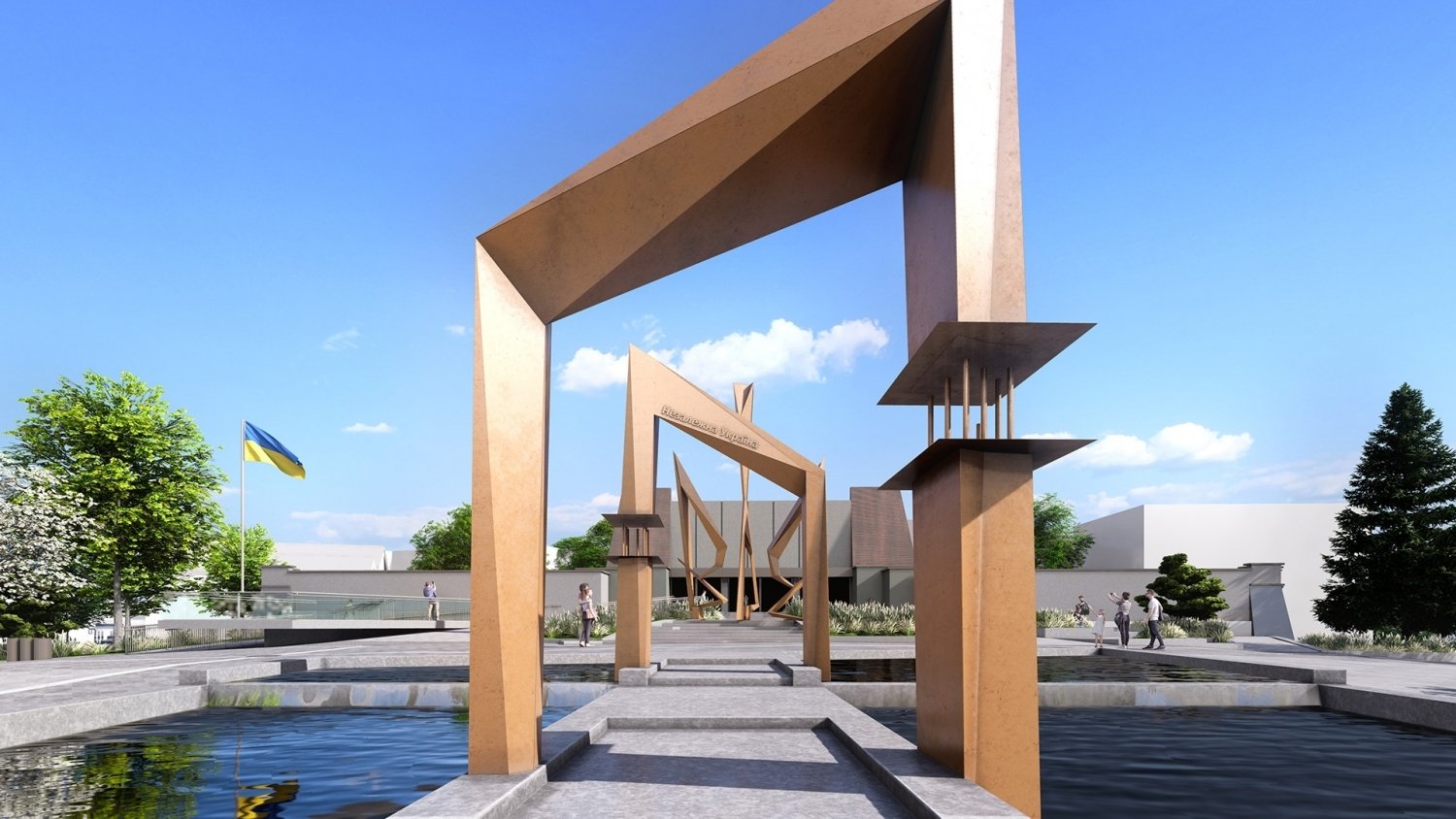 Тут встановлять великий герб та чотири арки, що символізуватимуть опір українців