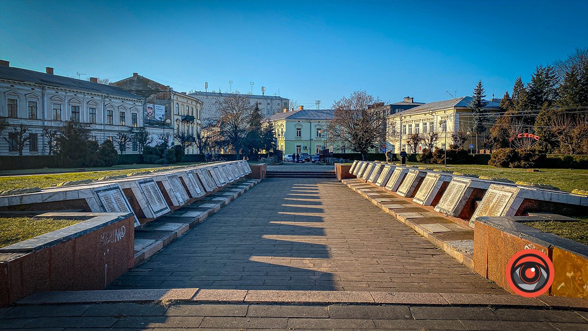 Додамо, що на місці теперішньої площі Героїв у Коломиї колись був єврейський квартал. Під час Другої світової війни тут поховали радянських солдат, звели російські монументи і, встановивши вічний вогонь, назвали меморіал площею Скорботи.
