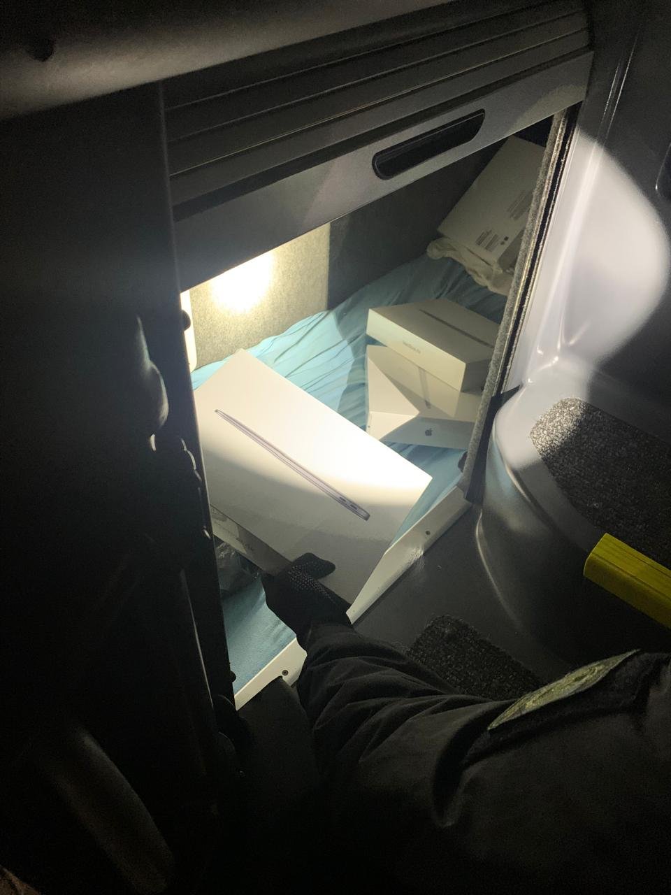 Як розповіли у Західному регіональному управлінні ДПСУ, незадекларований товар був захований у місці для відпочинку водіїв, у ніші для речей. За попередньою оцінкою, сума виявленого товару може сягати 3 млн грн. Всього прикордонники виявили 61 ноутбук Apple Mac Book Air.