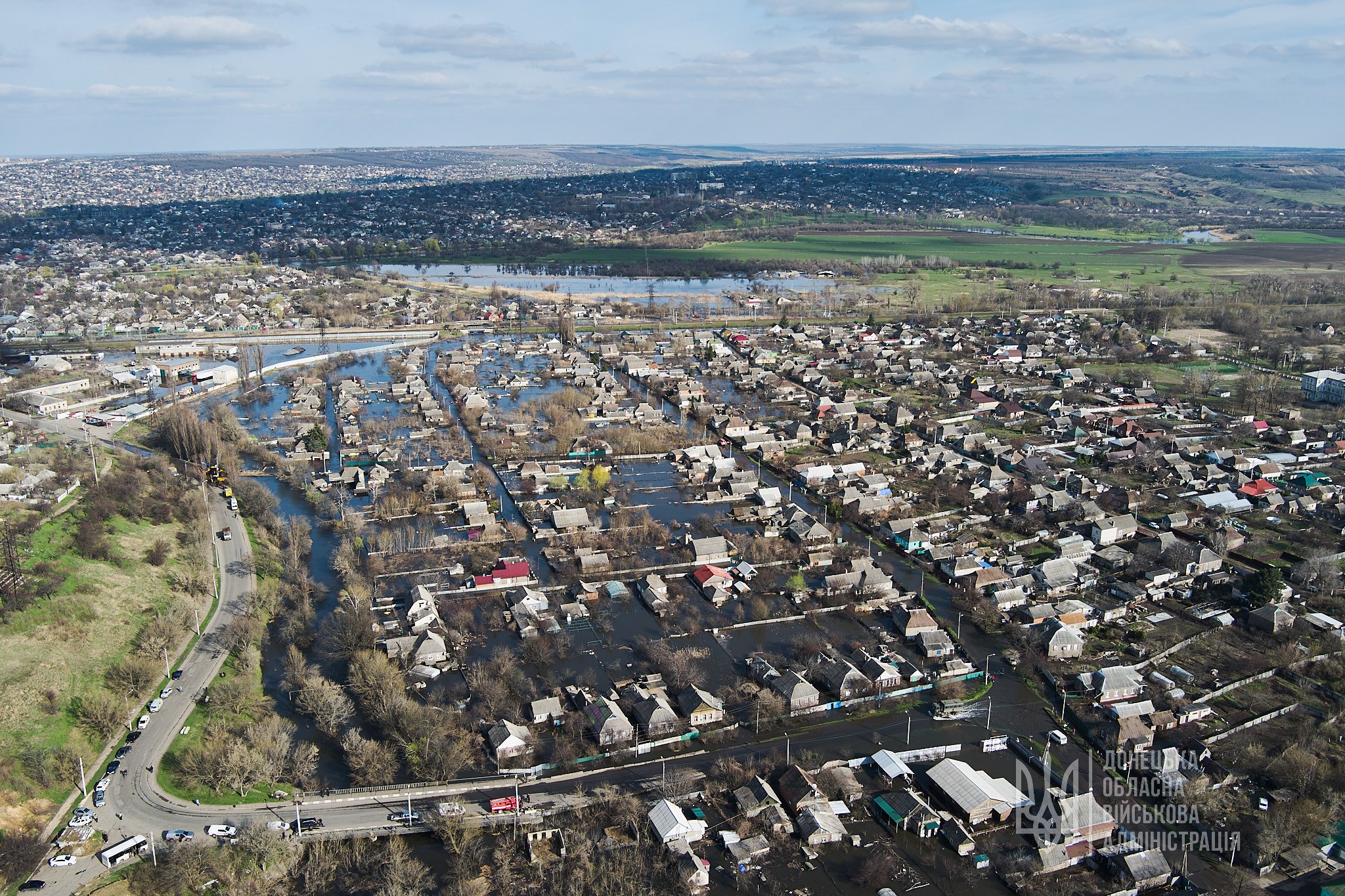 «Близько 260 будинків на 30 вулицях підтоплено у Краматорську. На одному зі ставків частково зруйновано водоскидний шлюз, в результаті чого відбувається неконтрольоване скидання води. Вода прибуває», – повідомив Павло Кириленко.