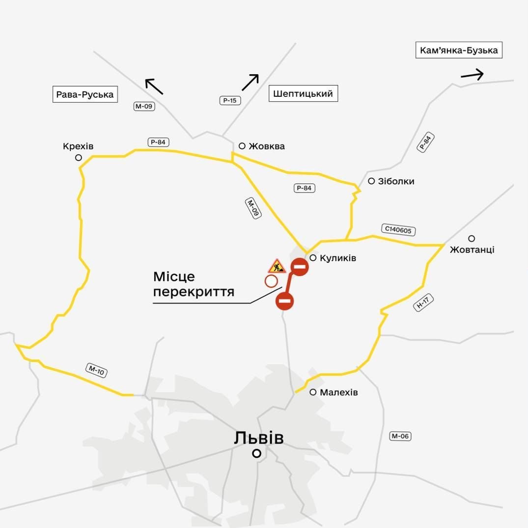 Об’їзд ділянки здійснюватиметься згідно з тимчасовою схемою, погодженою з патрульною поліцією, Львівською обласною військовою адміністрацією та Службою відновлення у Львівській області. Потрапити зі Львова до Жовкви можна буде через Жовтанці і Зіболки або через Крехів. Водіїв просять заздалегідь планувати свої маршрути і зважати на встановлені дорожні знаки.