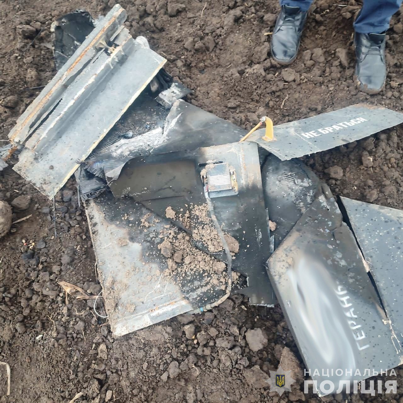 Уламки трьох інших шахедів розлетілись у радіусі 200 м від місця падіння. Їх знайшли у полях. Постраждалих людей чи пошкодження майна не було. Поліцейські вибухотехніки обстежили місця падіння безпілотників, частини дронів будуть вилучені та знищені.