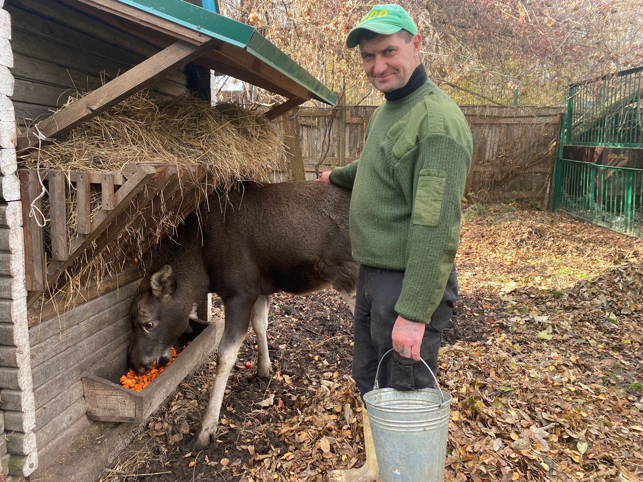 Для тварини організували цілодобове, з інтервалами у 2-3 години, годування, одразу обробили тіло препаратами від кліщів. Зараз лосеняті вже десять місяців. Тварина часто перебуває на вигулі у відкритому вольєрі.