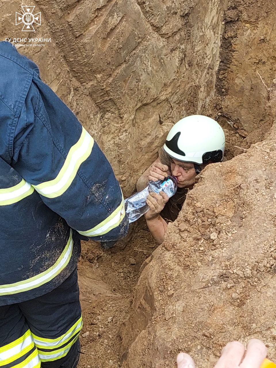 «На місце події виїхали рятувальники 1-ї та 25-ї державних пожежно-рятувальних частин та аварійно-рятувальна частина міста Луцька. О 14:18 врятували одного чоловіка (Олександр, віком 33 роки), якого передали медикам і проводили роботи з діставання другої людини», – йдеться у повідомленні.