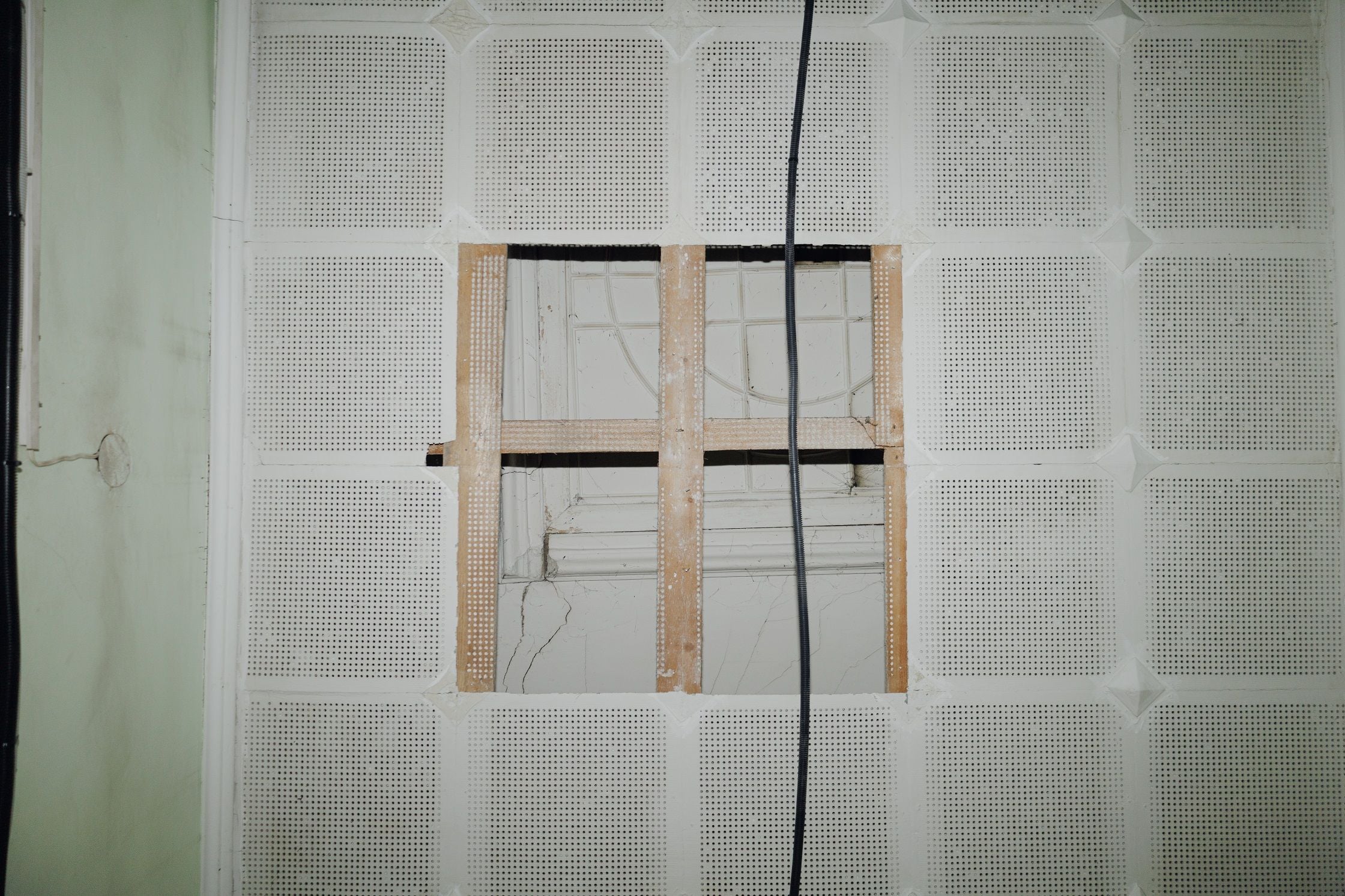 Денні ліхтарі, замальовані білою фарбою та закладені панелями (фото Mercury Art Center)