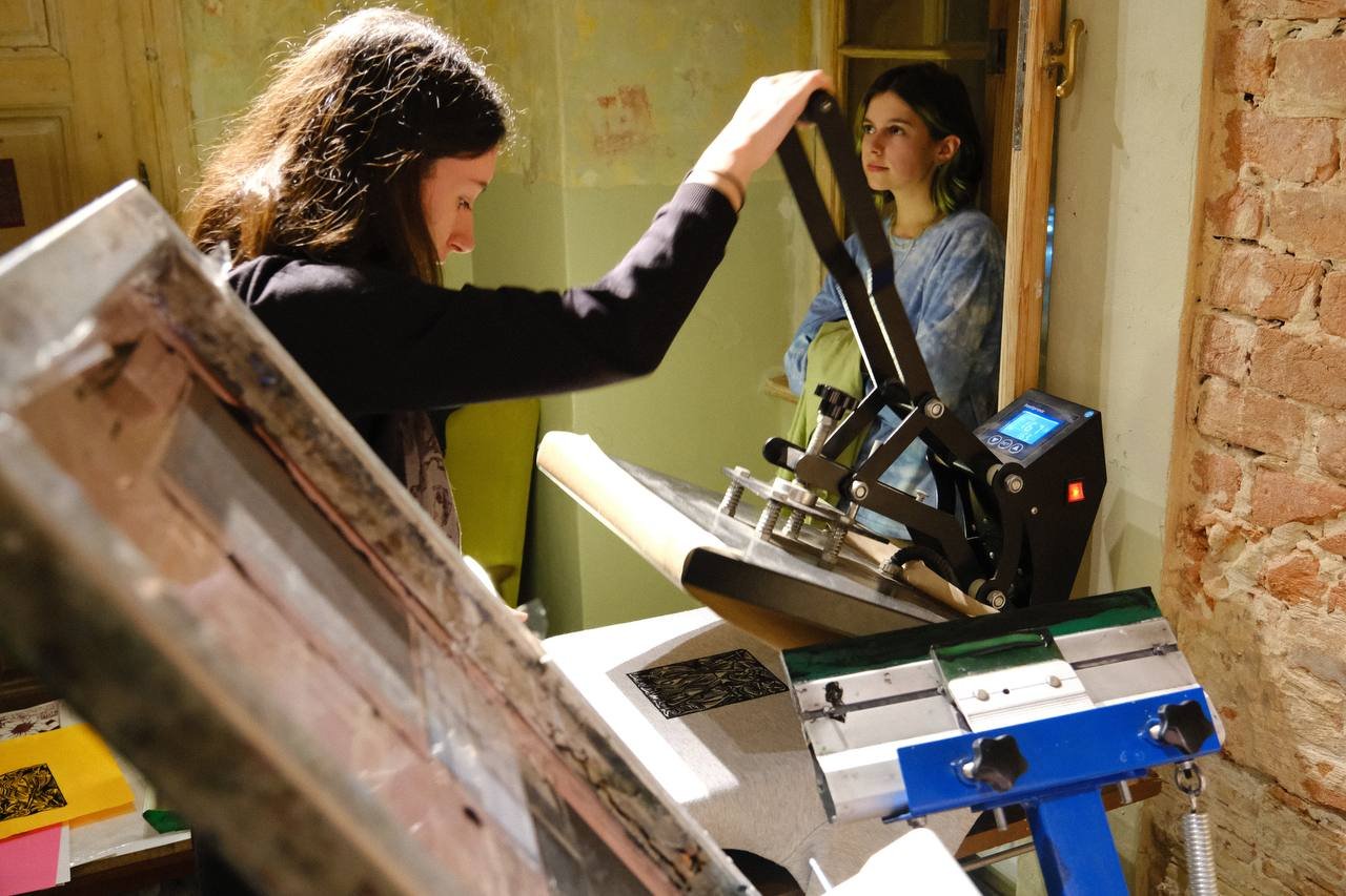 Новою робочою студією вже скористався художник з Києва Євген Меркуш, який тут працював і навчав людей техніки шовкотрафарету.