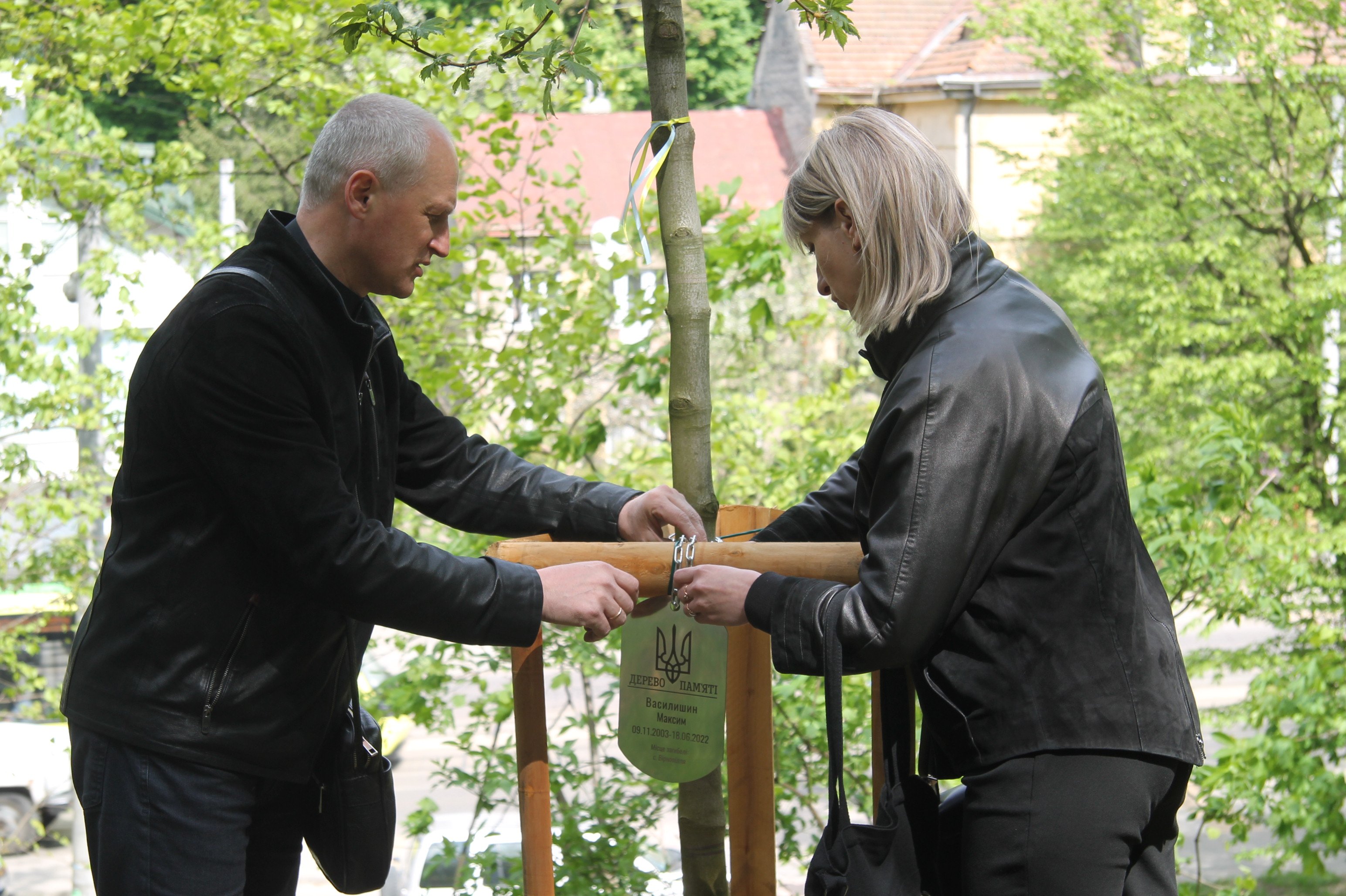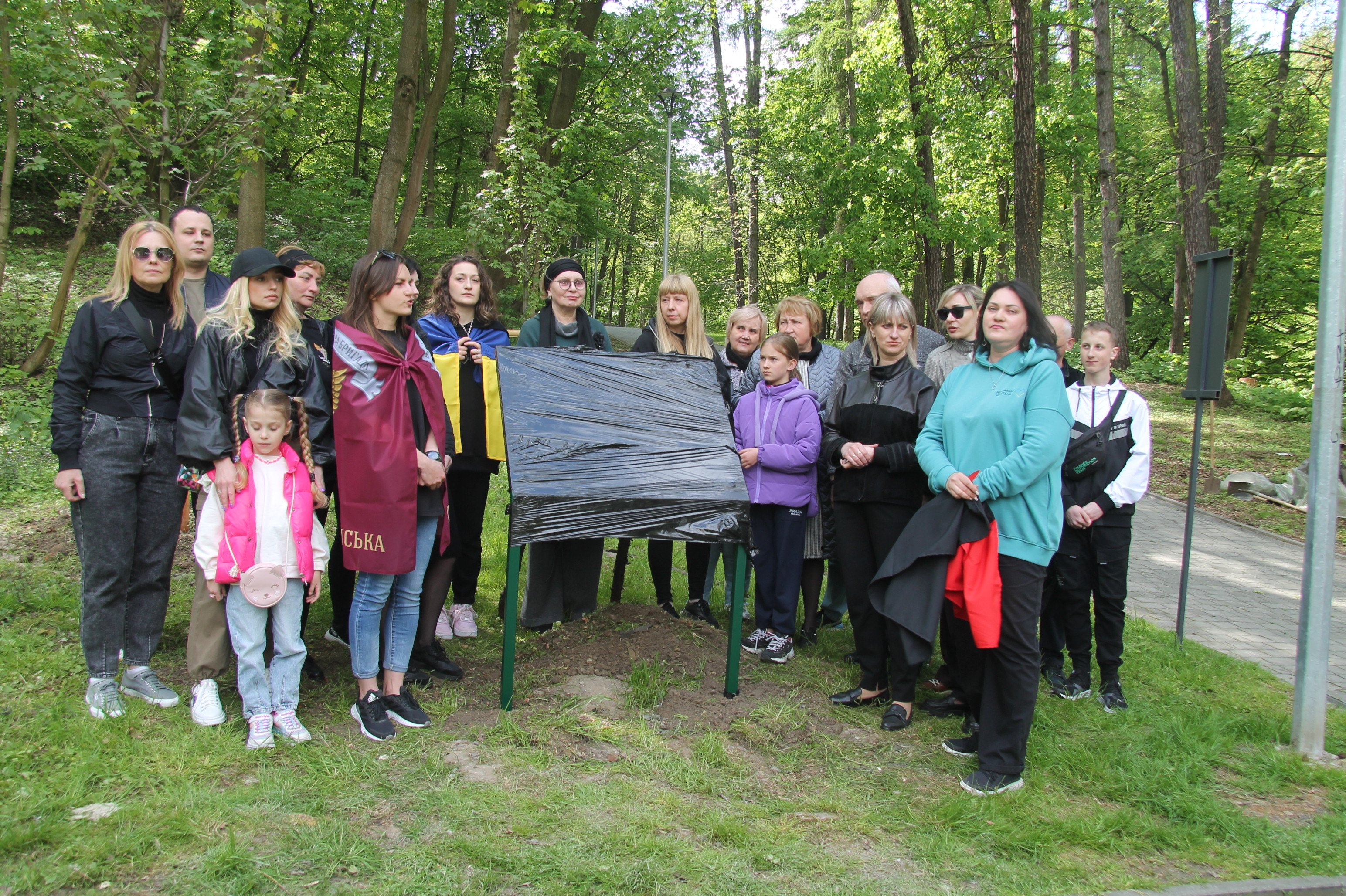 У парку Залізна Вода сім'ї загиблих військових посадили вісім дерев. Кожне з них має пам'ятну табличку та присвячене окремому захисникові. Крім цього, біля дерев встановили пам'ятний стенд. ZAXID.NET у п'ятницю, 12 травня, відвідав офіційне відкриття алеї.