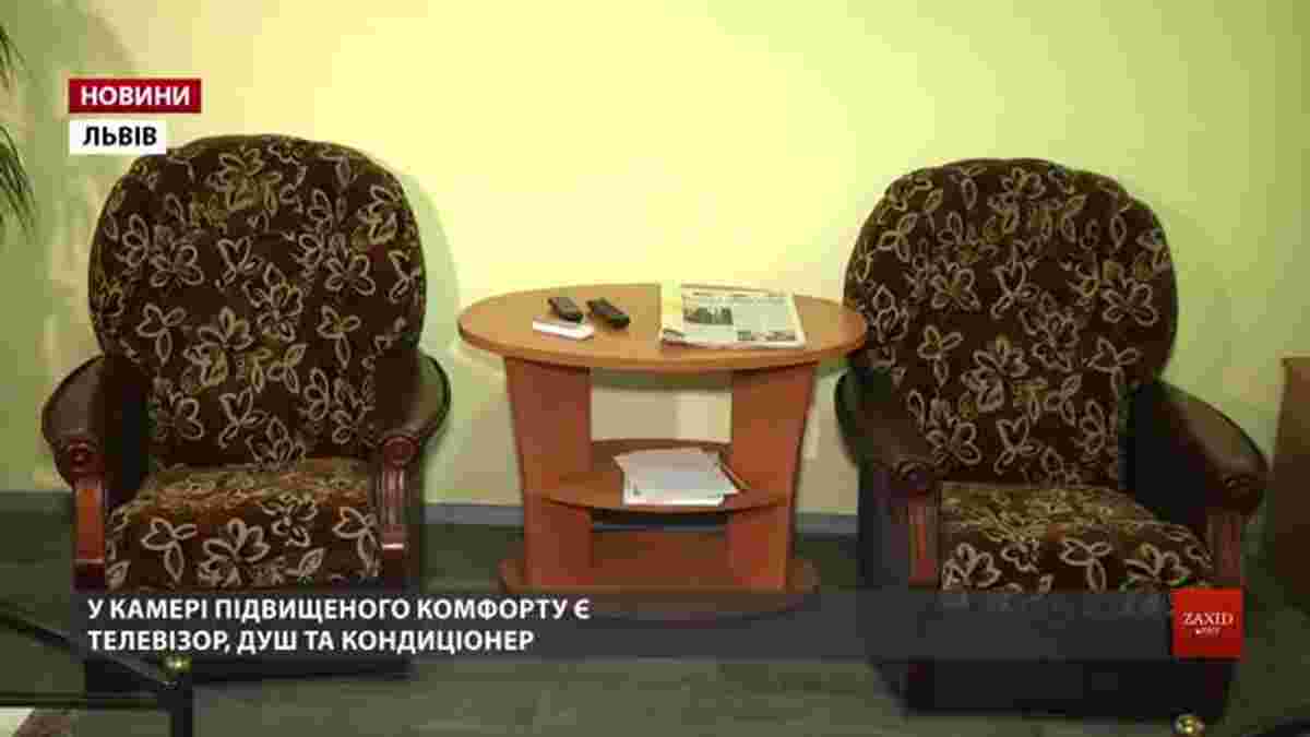 До капітального євроремонту ще місяць тому камера львівського СІЗО вміщувала 12 людей, там були обідрані стіни та жахливе місце для туалету. Тепер її не впізнати. Про обмеження волі свідчать лише ледь помітні ґрати за пластиковими вікнами. У тюремно-готельній так званій «хаті» тепер є плазмовий телевізор, душова та кондиціонер.