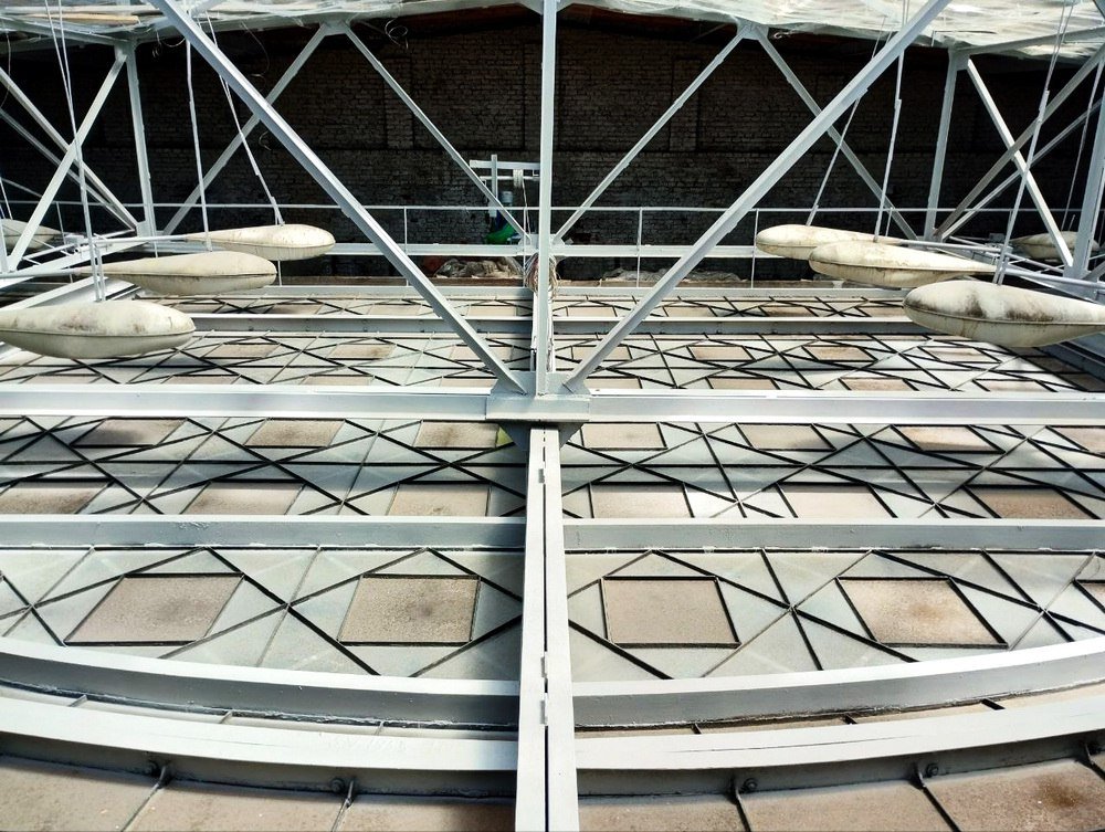 Після інциденту з падінням скла стелю оглянула комісія й знайшла численні тріщини, які розширюються. Відтак товщина та якість скла не відповідає нормам безпеки. Олег Вівчарик розповідає, що більшість сегментів світлового ліхтаря під впливом часу, природних чинників та вібрацій мають пошкодження.