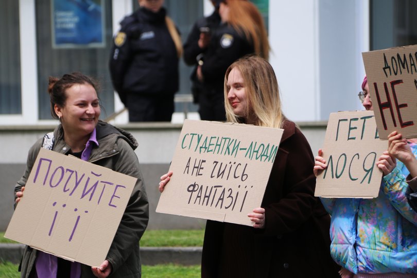 «Ми незалежні активістки, також спільнота ЛНУ – самоврядування, і активістки з "Феміністичної майстерні" зібралися, щоб привернути увагу громадськості до проблеми домагань в університетах. Конкретно в цьому випадку йдеться про ЛНУ. І конкретно в цьому випадку це професор Лось, який хоче повернутися на посаду. Прийшли висловити обурення і наголосити, що це ненормально. Домагання – це злочин, за який має бути відповідальність», – сказала активістка Дара Когутяк.
