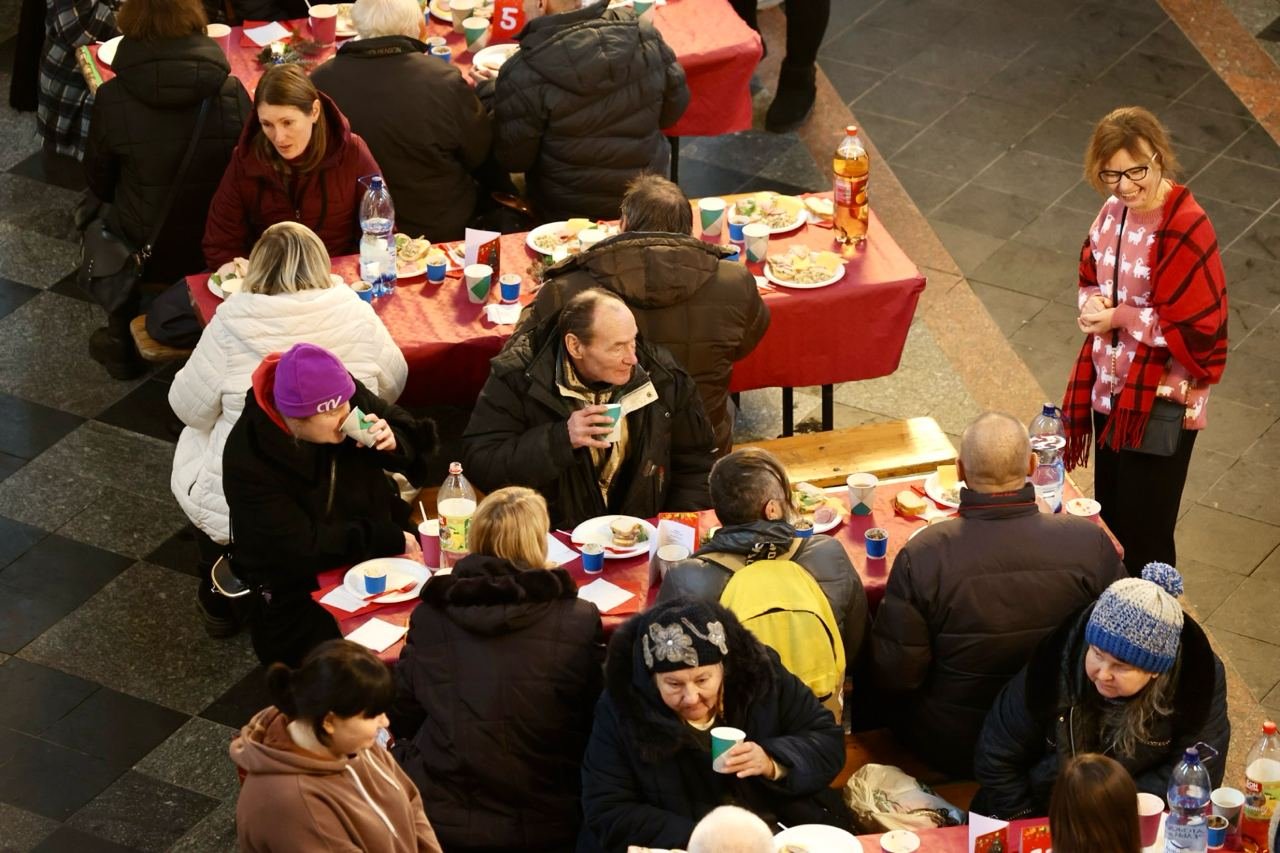 На різдвяний обід у Церкві Покрови запросили приблизно 150 людей, які перебувають у складних життєвих обставинах. «Із багатьма з них організатори підтримують зв’язок вже понад 20 років. Приблизно 10 гостей у списку переїхали до Львова через війну», – розповіли у міській раді.