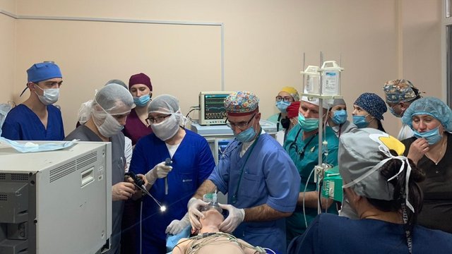 Цього дня львівські отоларингологи спільно з польським фахівцем прооперували трьох дітей з хронічним отитом, післятравматичним рубцевим стенозом гортані і антрохоанальним поліпом носа. Професор Шидловський високо оцінив рівень забезпечення наркозу дитячими анестезіологами ОХМАТДИТу.