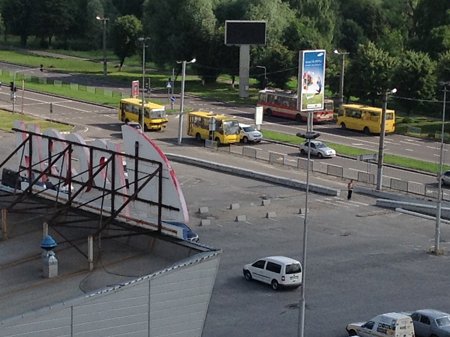Водночас на 9.20 навпроти супермаркету «Арсен» по проспекту Чорновола посеред проїзної частини стоять дві маршрутки - №111 і 50.
