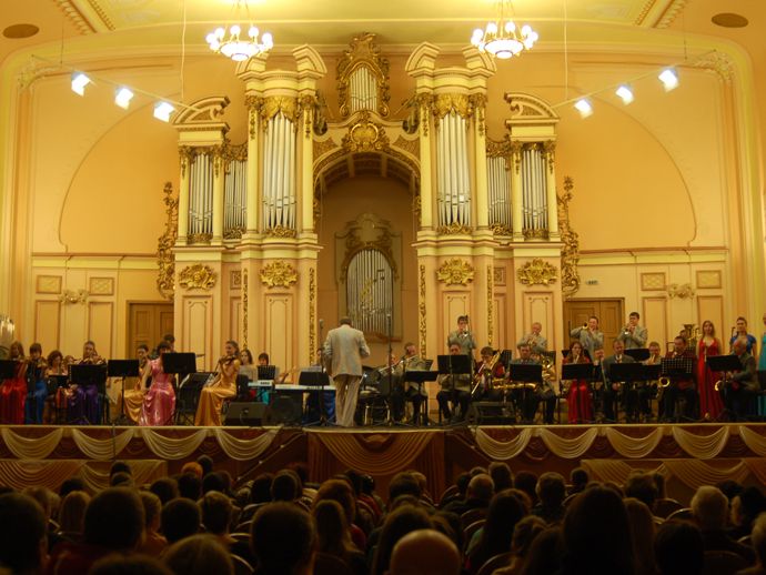 У Львівській обласній філармонії відбувся безкоштовний концерт Муніципального оркестру духової та естрадної музики м.Луганська, в якому взяло участь понад 600 осіб.