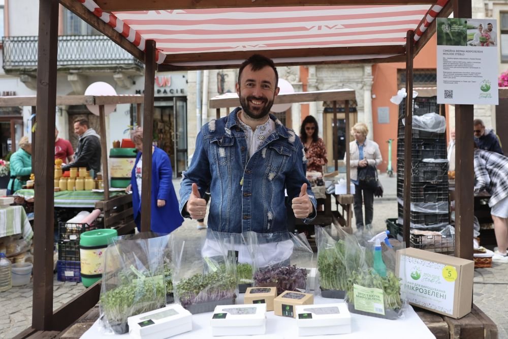 Серед продавців –львів’янин Данко Матійчук. Чоловік вирощує мікрозелень, його продукція вже втретє представлена на фермерському ярмарку.