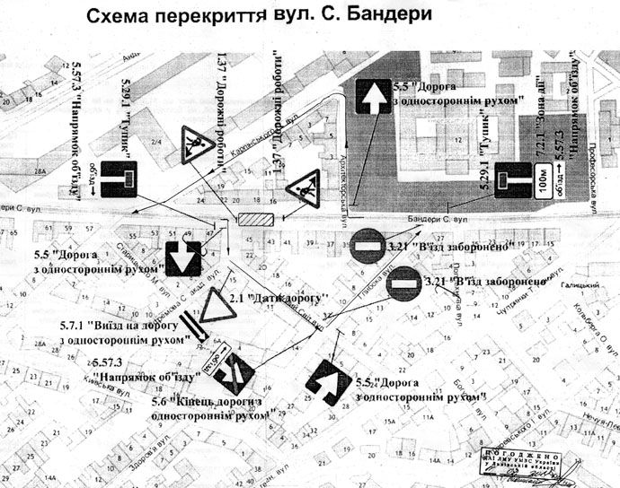21 лютого з 08:00 до 20:00 23 лютого для руху транспорту буде перекрита половина проїзної частини вулиці Степана Бандери, 18 у Львові.