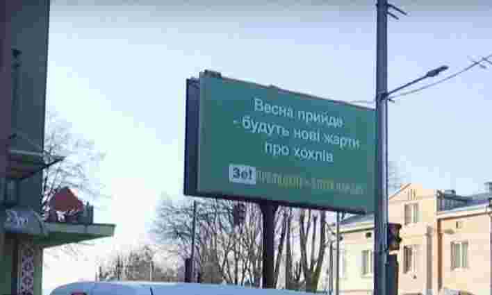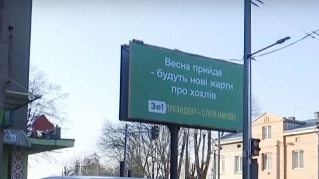 На одному з білбордів був напис «Весною житимемо по-новому. У федеральному окрузі», а на ще двох: «Весна прийде – будуть нові жарти про хохлів». В оформленні антиреклами також використали кольори та гасло передвиборчої кампанії Володимира Зеленського.
