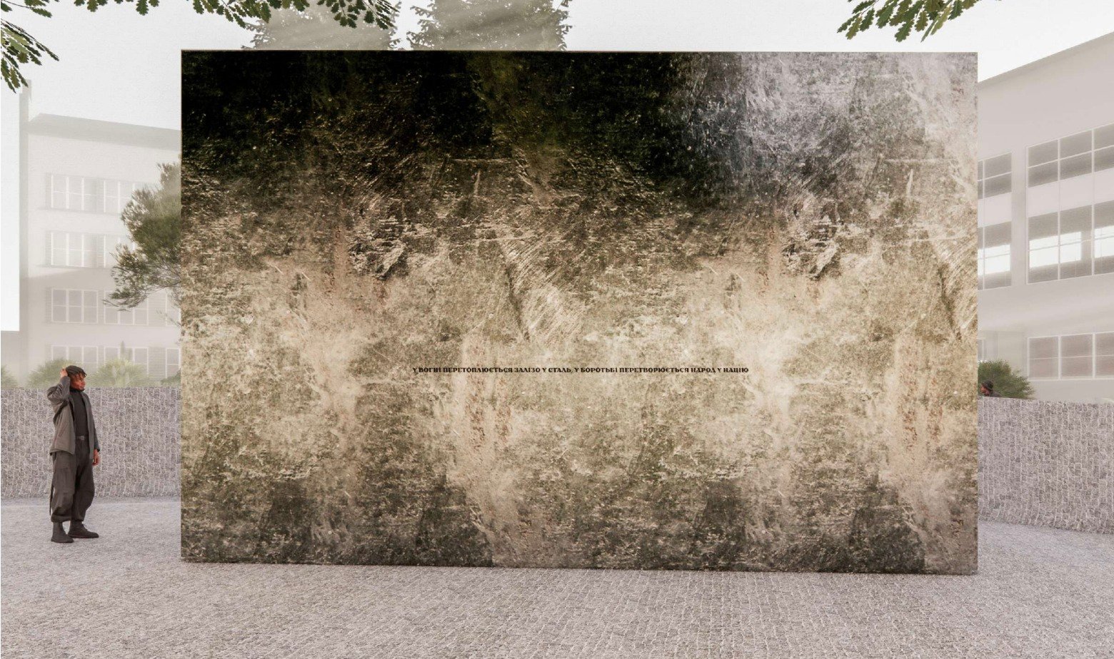 Композиція виконана у вигляді зброярні, на стіні якої буде напис-цитата: «У вогні перетоплюється залізо у сталь, у боротьбі перетворюється народ у Націю». «Зброярня власне стає ключовим елементом простору. Вона досі залишається відкритою, адже наша боротьба триває. А ти взяв свою зброю? – ніби запитує простір у свого відвідувача», – пояснив мер.