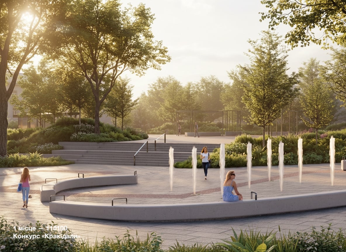 Переможниця архітектурного конкурсу, архітекторка Ольга Криворучко, розповіла про ключові ідеї проєкту. За її словами, головним завданням було створити якісний, гуманний та інклюзивний громадський простір.