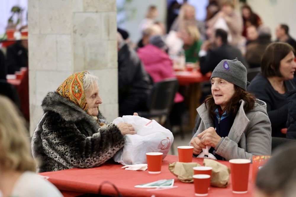 Волонтерами та помічниками на святкових обідах для потребуючих стали внутрішньо переміщені особи.