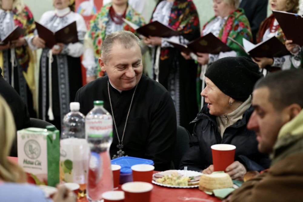 «Я безмежно вдячний тим, хто організував цей обід. Адже наш Господь прийшов до кожної людини, зокрема до убогої, потребуючої, до переселенців. І нам дуже приємно, що наші внутрішньо переміщені стали добрим знаряддям у Божих руках і тут служать і допомагають в організації», – сказав єпископ-помічник Львівської архиєпархії УГКЦ, владика Володимир Груца.