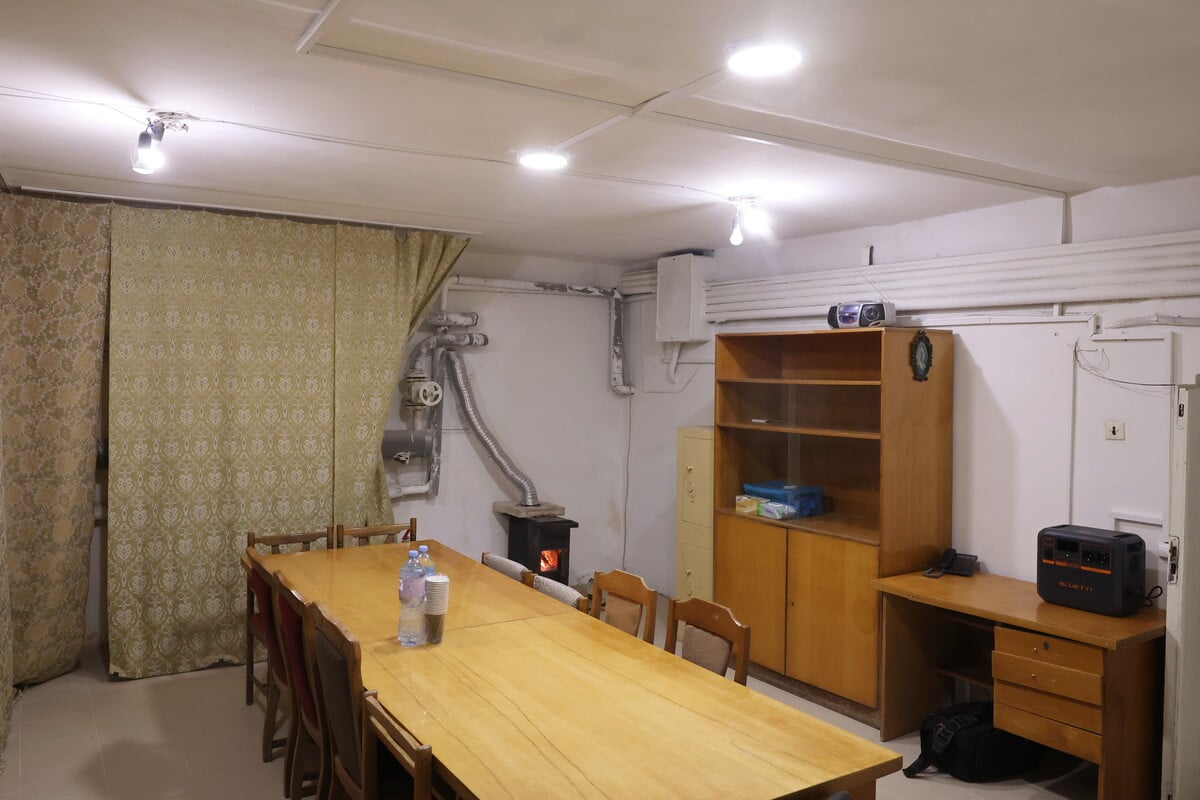 «Тут є дві буржуйки, є запас дров для них, є запас води у баку на тисячу літрів, є душ, туалети, є доступ до інтернет-зв’язку через старлінки. Також тут можна зробити собі гарячий чай чи каву. У разі крайньої загрози тут є два входи і виходи. Також зазначу, що тут є автономне живлення – це сонячні панелі і дизельний генератор. Наш Пункт незламності разом з тим є укриттям. Мешканці району ним активно користуються, зокрема минулого обстрілу тут було більше 80 людей. І це, як на мене, важлива функція Пункту незламності, адже війна триває. Тому зараз це приміщення відкрите на випадок повітряної тривоги», – зазначив Юрій Лукашевський.