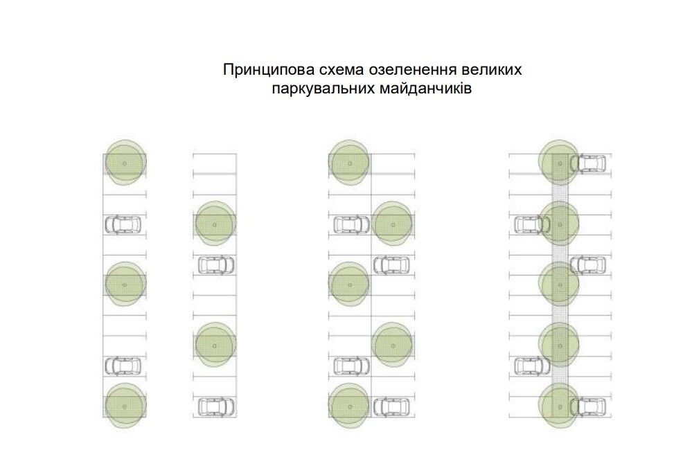 Схеми, які затвердив виконком, передбачають чітке розташування дерев для різних типів паркінгів, із врахуванням умов для здорового росту дерев – достатньої кількості води, повітря та простору для кореневої системи. На основі затвердженої схеми департамент архітектури та просторового розвитку міста зможе прописувати вимоги щодо озеленення паркомісць для всіх підприємців чи муніципальних установ, які погоджують із містом благоустрій території.