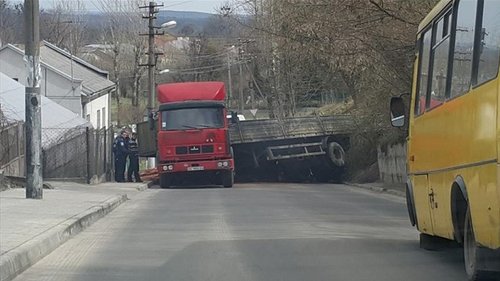 Утім, як припускають користувачі соцмереж, причиною цього могло стати те, що вантажівка з цеглою не змогла виїхати на підйом і скотилася донизу. Така версія підтверджується також тим, що задня частина кузова виїхала за межі дороги на земляний насип. Відтак причіп опинився поперек дороги на підйомі і цегла проламала борт.