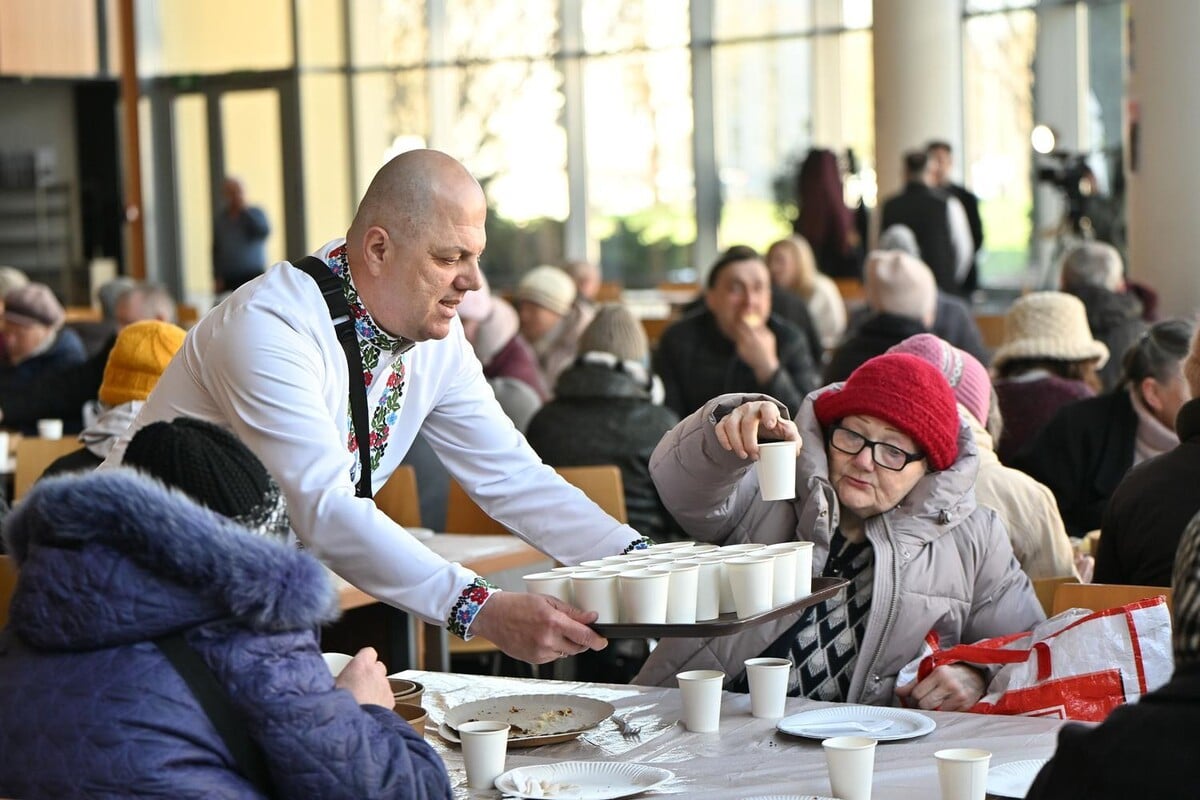 Як повідомила Львівська міськрада, трапезу із потребуючими у стінах університету розділили мер Львова Андрій Садовий та заступниця міського голови з гуманітарних питань Ірина Кулинич.