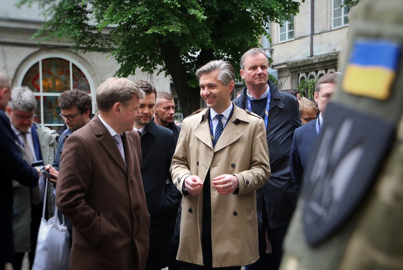 У п'ятницю, 9 травня, за участі прем'єр-міністра України Дениса Шмигаля, високої представниці ЄС у закордонних справах Каї Каллас та 19-ти міністрів закордонних справ ухвалили «Львівську заяву», якою започаткували створення міжнародного спецтрибуналу для високопосадовців Росії за злочин агресії проти України. Невдовзі декларацію підпишуть у Люксембурзі. Крім створення спецтрибуналу, у Львові відбулося засідання Ради міністрів закордонних справ держав та підписання угоди про спрямування Україні траншу прибутків від заморожених російських активів.