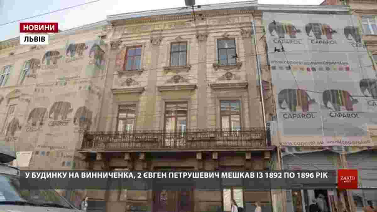 Із нагоди 100-річчя заснування Західноукраїнської Народної Республіки фасад будинку, де з 1892 по 1896 роки мешкав її президент Євген Петрушевич, продовжують реставрувати. Риштування на будівлю, яка розташована на вул. Винниченка, 2, встановили в липні. Самій споруді понад 150 років і вона потребувала реставрації.