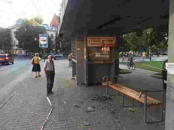 Сьогодні, 25 серпня, у Львові на зупинці громадського транспорту, що неподалік пам’ятника Степану Бандері, завалилася частина скляного даху зупинки на людей.