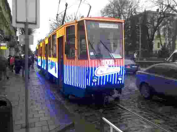 У Львові трамвай прикрасили різдвяною ілюмінацією