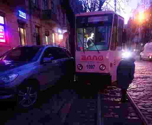 У Львові трамвай з’їхав з рейок і пошкодив припаркований автомобіль
