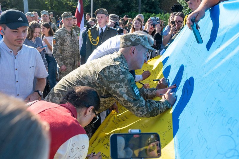 У п’ятницю, 23 серпня, у День державного прапора України у Львові урочисто підняли синьо-жовтий стяг на найвищому флагштоці області, що біля Національної академії сухопутних військ імені Петра Сагайдачного. Також відбулося закладання капсули часу. У ній – фотографії та побажання від людей, які творять сучасну історію нашої країни. Про це повідомив начальник Львівської ОВА Максим Козицький. Відкрити капсулу планують у 50-ту річницю відновлення Незалежності України.