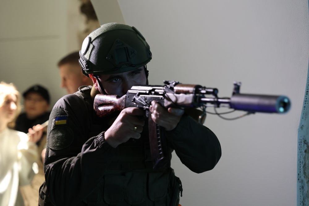 «Звукові ефекти можна збільшувати чи зменшувати, в цьому тирі вже відпрацьована так звана балістика зброї, враховуючи траєкторію польоту кулі. Безпосередньо цей тир може працювати з декількома видами зброї, і ми можемо навчати будь-якого спеціаліста і військового», – пояснив заступник командира 45-го полку Національної гвардії України імені Олександра Красіцького Іван Зорик.