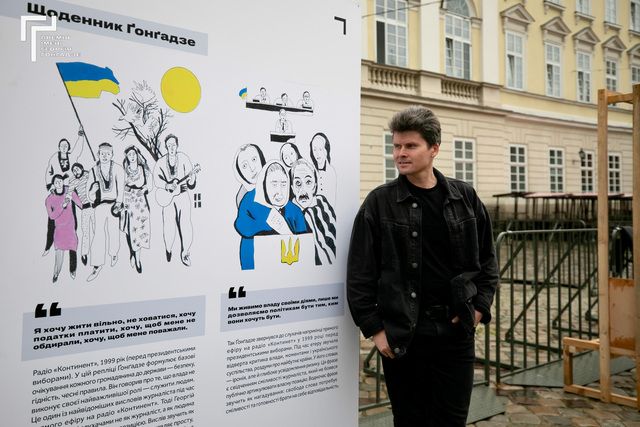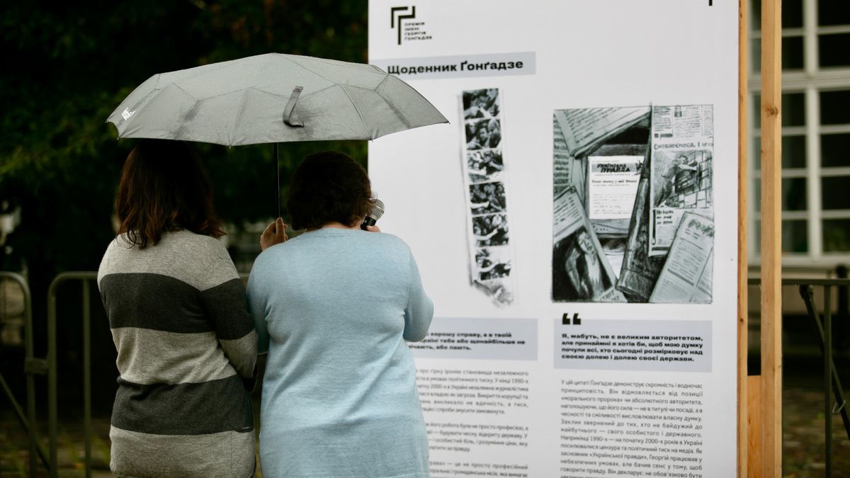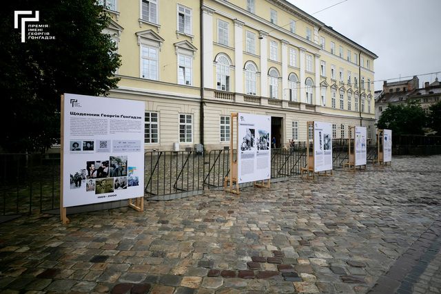 У вівторок, 16 вересня, у Львові на Площі Ринок відкрили вуличну експозицію «Щоденник Георгія Ґонґадзе», підготовлену Премією імені Георгія Ґонґадзе. Участь у відкритті взяли журналістка, медіаменеджерка, лауреатка Премії Ґонґадзе-2024 Тетяна Трощинська та медіакритик, креативний директор Lviv Media Forum Отар Довженко. «Завдяки цій експозиції люди, які не знали Георгія особисто, можуть більше про нього довідатись і зрозуміти. Яким він був, яким бачив Україну свого часу, про яку Україну мріяв і за яку боровся», – сказав Отар Довженко. Такі ж виставки сьогодні відкрили у Києві та Одесі. Експозиції можна буде оглянути до 22 вересня. Нагадаємо, 16 вересня – День пам’яті журналіста Георгія Ґонґадзе.