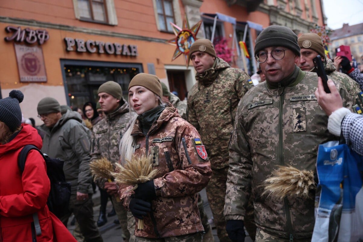 Напередодні Різдва, 24 грудня, у Львові на площі Ангелів встановили традиційний різдвяний дідух. Дідух виготовлений сім’єю Коцюків ще в 2009 році і відтоді прикрашає Львів на свята, повідомляє пресслужба Львівської міськради. Встановлення дідуха супроводжувалося спільною молитвою містян, колядками та пригощанням пампухами. В урочистій ході з дідухом взяли участь й ветерани, які проходять реабілітацію в центрі «Незламні». Додамо, що 15-річний дідух оновлюють майстри Музею народної архітектури та побуту імені Климентія Шептицького у Львові. (фото ЛМР)