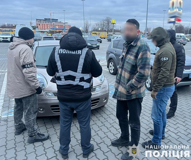 Підозрюваного затримали під час одержання всієї суми коштів. Як видно з оприлюднених правоохоронцями фото, затримання відбулося на парковці ТРЦ King Cross Leopolis у Львові.
