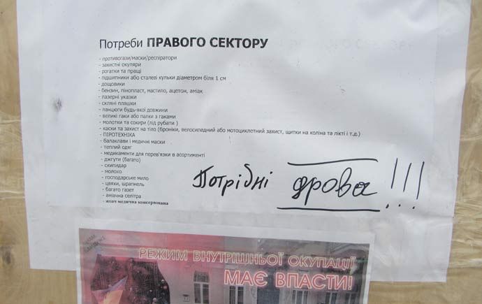 Оголошення з потребами "Правого сектору"/Фото: ZAXID.NET