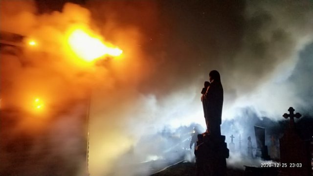 «Повідомлення надійшло про пожежу на вул. Шевченка, 22 у дерев'яній церкві критій бляхою, розміром 14×10 м, висотою 15 м. До місця події негайно направили вогнеборців Радехівського, Буського, Бродівського, Кам'янка-Бузького районів та оперативно-координаційний центр ГУ ДСНС України у Львівській області. На момент прибуття перших пожежно-рятувальних підрозділів будівля храму була повністю охоплена вогнем», – йдеться в інформації ДСНС Львівщини.