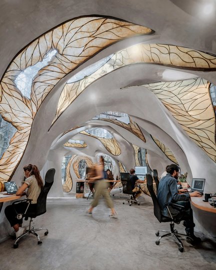 Конструкція офісу проходить через джунглі й у деяких місцях огортається навколо дерев, а стовбури лишаються всередині. Офіс також має криволінійні вікна та двері різної форми, переплетені арматурою. На дверях і вікнах зображені візерунки, які можуть нагадувати листя дерев чи крила комах із джунглів.