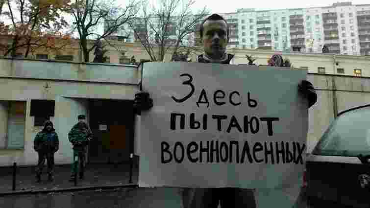 До будівлі інституту по черзі підходили москвичі з плакатами «Свободу Надії Савченко», «Тут катують військовополонених», «Співчуваю військовополоненій Наді Савченко» та інше.