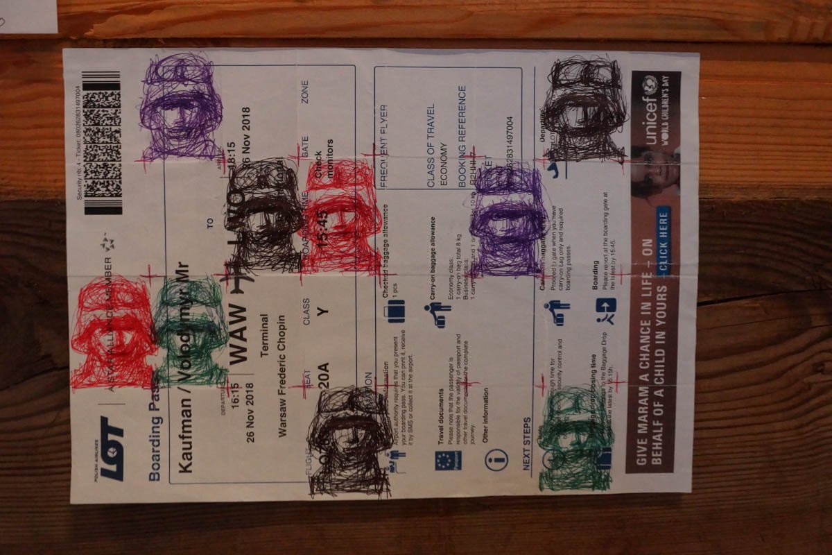 Влодко Кауфман почав малювати зображення воїна у 2014 році. Він відтворює на різних поверхнях, у різних масштабах обличчя чоловіка у касці. Тлом та матеріалом може стати що завгодно: квитанції, поштові марки, клапті паперу, сторінки нотатника...