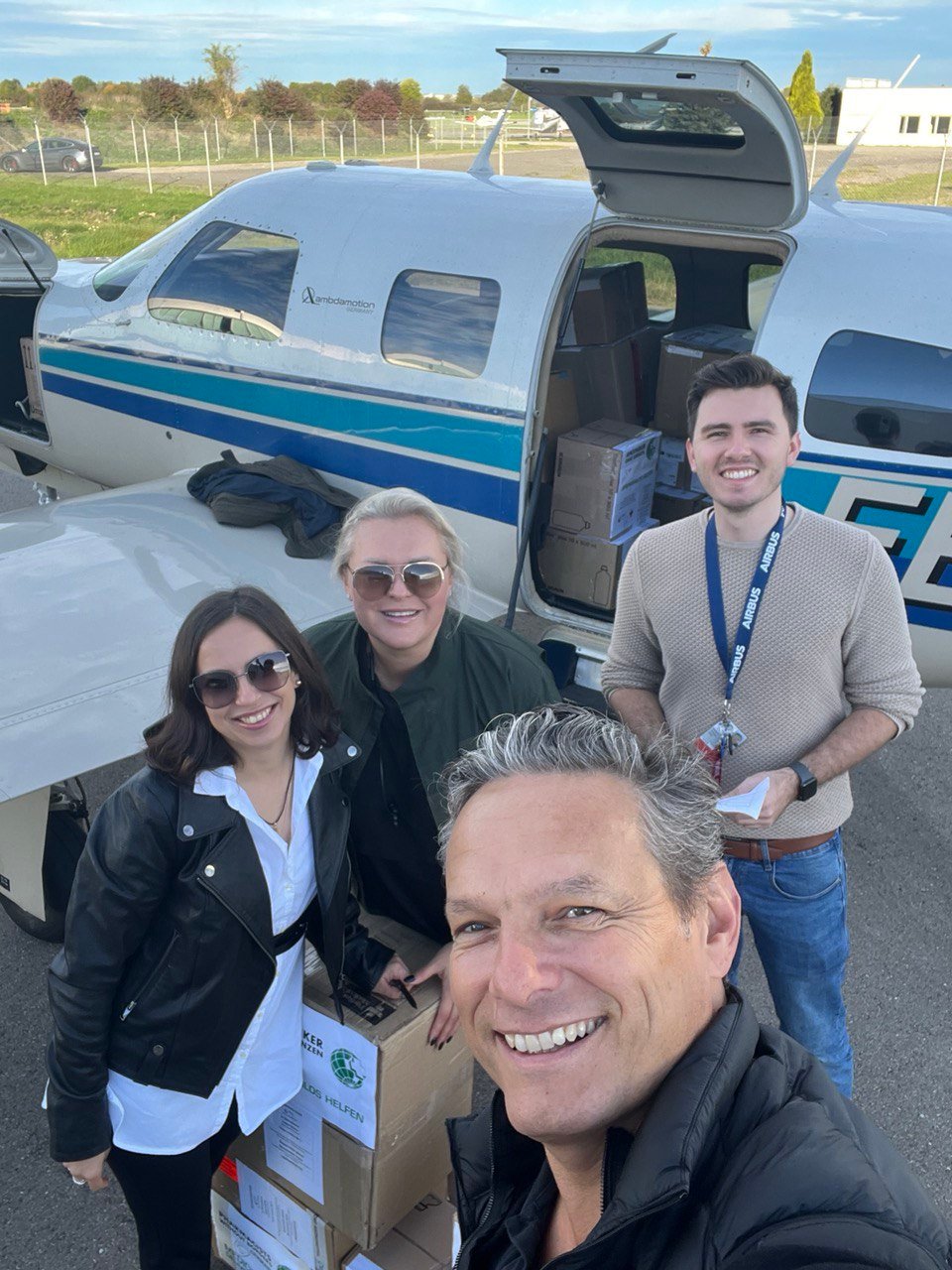 Йдеться про ініціативу Ukraine Air Rescue – обʼєднання пілотів-добровольців, які доставляли українських біженців літаком у ФРН, а звідти до польського кордону перевозили зібрану в Німеччині гуманітарну допомогу.