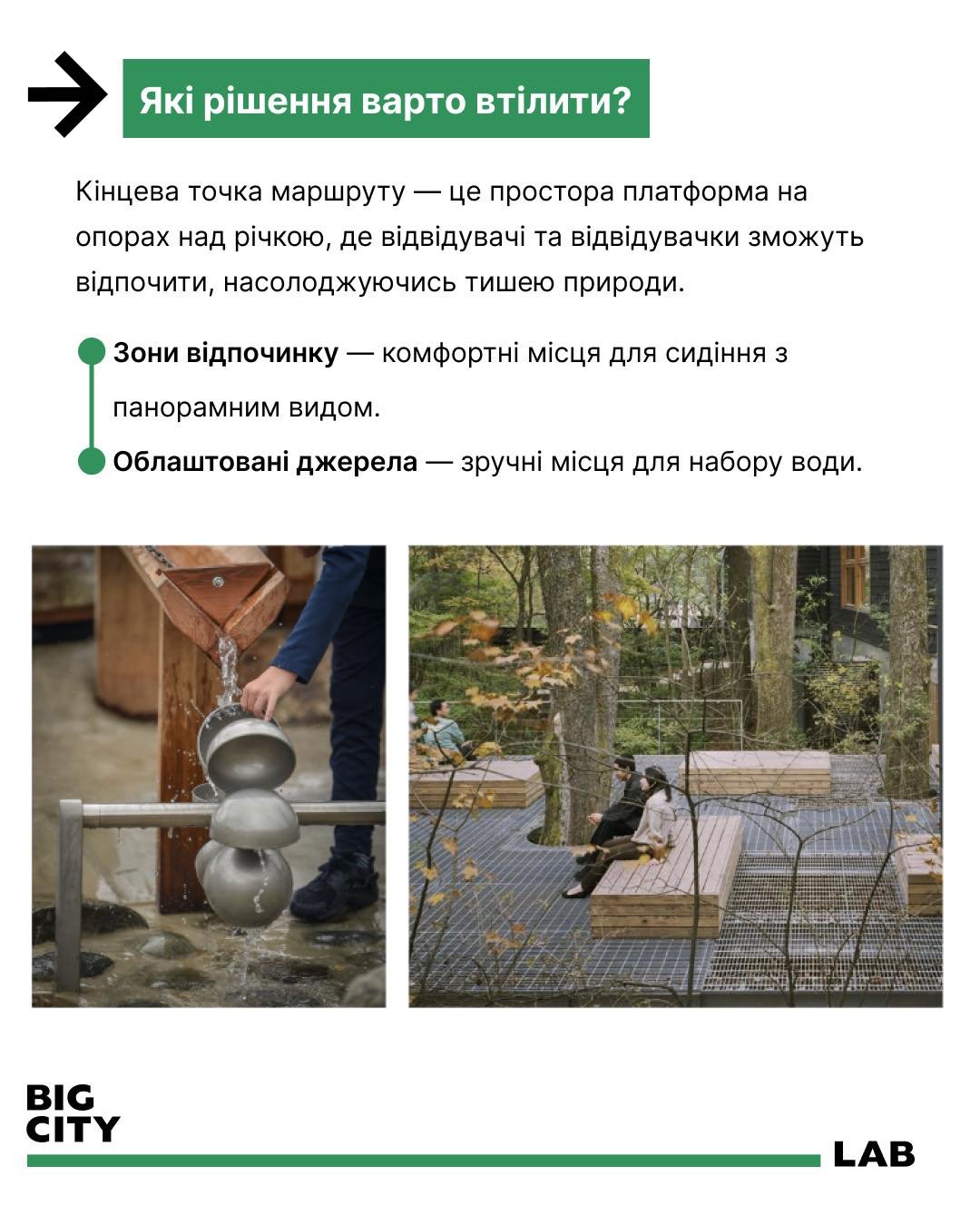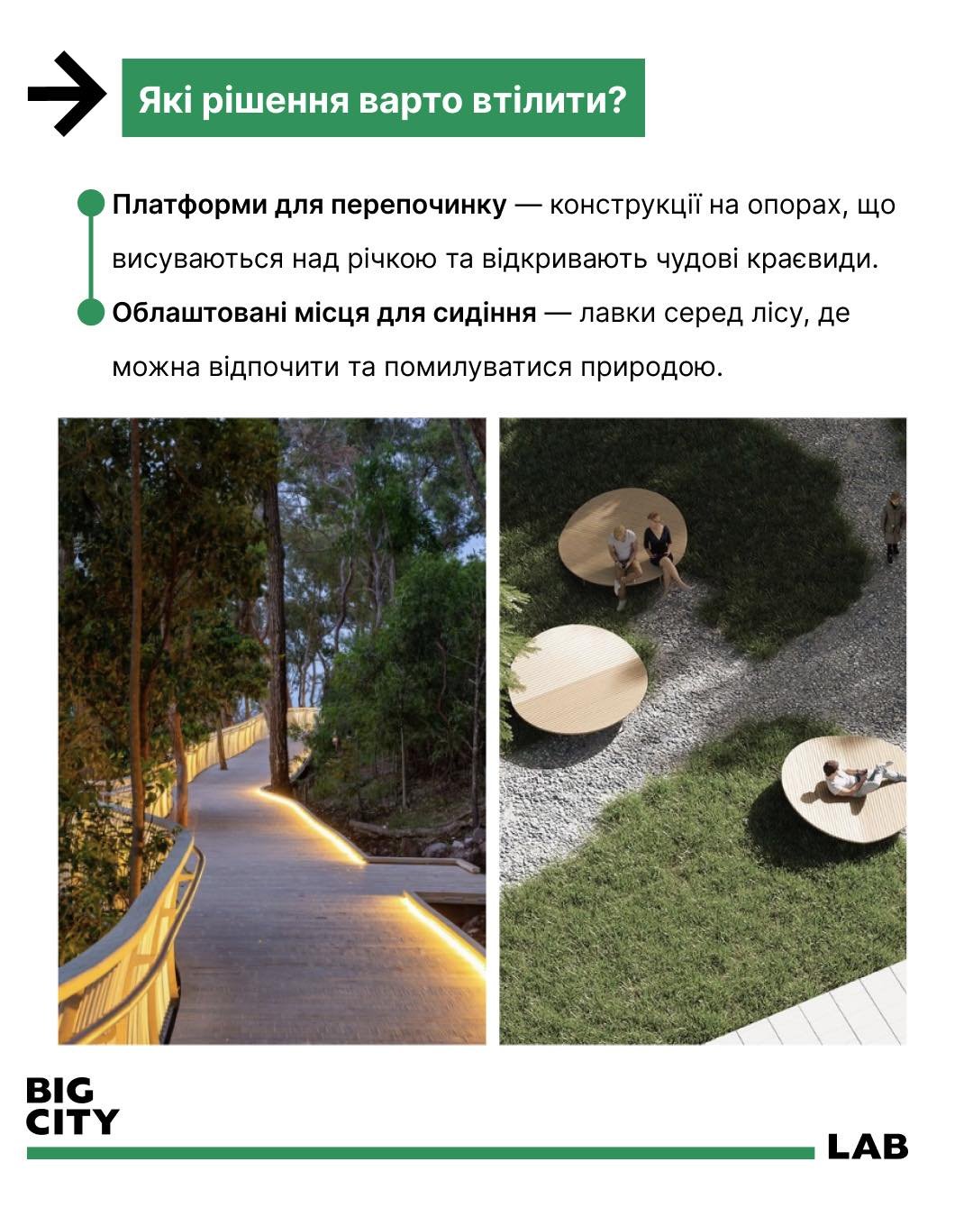 Команда Big City Lab дослідила територію нацпарку на можливість створення безбар’єрних маршрутів. Після аналізу трьох туристичних шляхів там визначили оптимальний варіант та розробили концепцію безбар’єрного маршруту, яка зробить природні локації доступними для всіх відвідувачів.