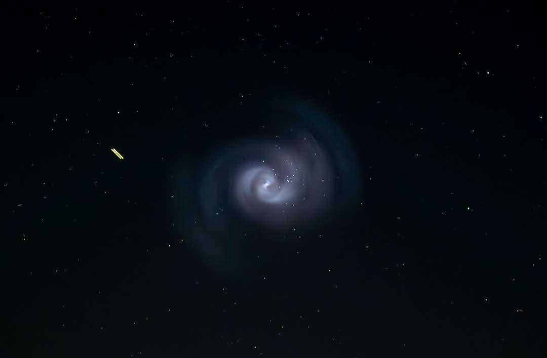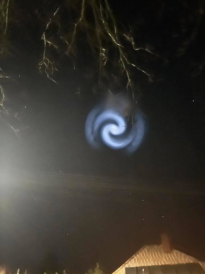 У низці регіонів України протягом кількох хвилин можна було спостерігати блакитну спіраль хмароподібної форми. Її формування спричинили викиди палива під час роботи другого ступеня носія SpaceX Falcon 9.