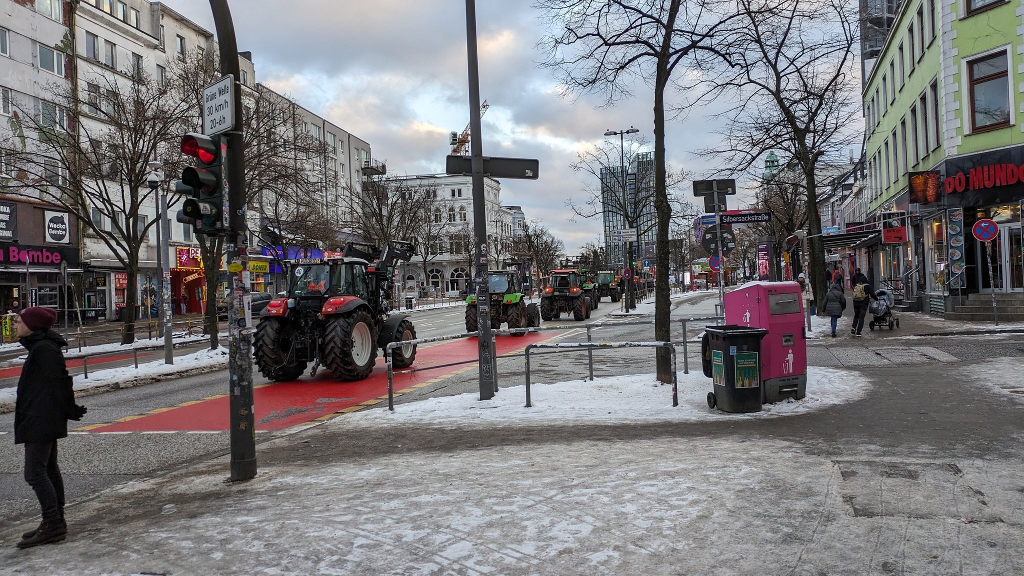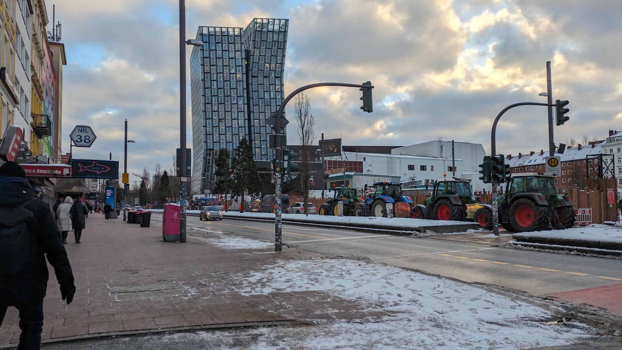 Seit 20 min stehen unsere Landwirte auf der Reeperbahn um auf die Missstände in DEU aufmerksam zu machen #Bauernproteste #B0801 #HH0801 pic.twitter.com/4JvTx2Q10a