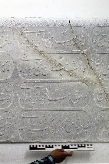 Науковці дослідили плиту і почали шукати перекладача з османської мови. Професор університету Улудаг у м. Бурса в Туреччині Мехмет Челєнко за допомогою своїх колег дійшов висновку, що напис виконаний османською мовою, а в тексті згадується султан Ахмед ІІІ і Сілахдар Дамад Алі-паша (мученик Алі-паша), який був під час його правління між 1713 і 1716 роками великим візиром.
