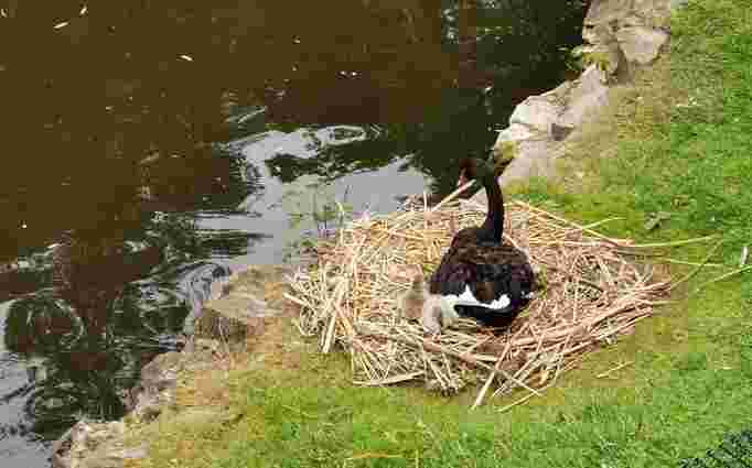 У пари чорних лебедів у Стрийському парку з'явилося потомство